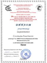 Обучающиеся МБОУ Николо- Березовской СОШ приняли участие в Десятом областном конкурс-фестивале литературного творчества детей и молодежи Ростовской области «Взлёт» имени Анатолия Чекулаева. Данный конкурс проводит «Творческий клуб «Взлёт» (г. Новочеркасск) в сотрудничестве с Ростовским Региональным отделением Союза Российских писателей. Все участники получили дипломы, а учителя благодарности.