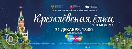 Трансляция новогоднего представления общероссийской новогодней ёлки в Государственном Кремлевском Дворце состоится на федеральном телеканале «Карусель» 31 декабря 2021года в 18:00 часов