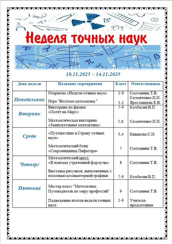 План Недели точных наук (10.11.2025 – 14.11.2025)